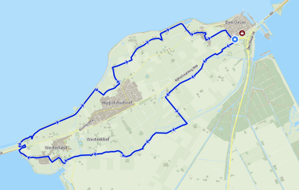 Places you pass through: Den Oever, Hippolytushoef, Slootdorp, Westerland