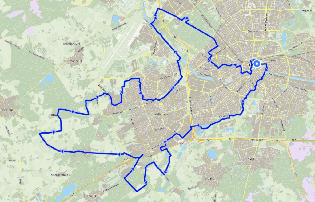 Plaatsen waar je doorheen fietst: Eindhoven, Knegsel, Veldhoven, Vessem