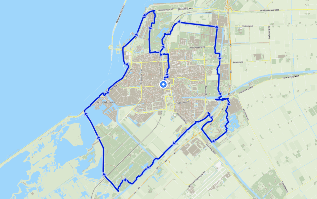 Wie denkt aan Flevoland ziet al gauw polders voor zich, omgeven door veel water. Dat is er allemaal, maar Flevoland heeft ook veel pareltjes. Deze fietsroute leidt je door onbekend Flevoland rondom de stad die vernoemd is naar de grondlegger van deze polders. De route start bij het NS Station. Maar je kunt ook met de auto je fiets brengen naar de SBB Buitenplaats Oostvaardersplassen of Batavia Stad en daar bij de route aanhaken. Je fietst grotendeels over autoluwe wegen en solitaire fietspaden, met veel natuur en uitzichten naar de grote meren of polders. Over rustige fietspaden leidt de route langs vaarten en meren, door biologisch landbouwgebied, stille bossen en moerassen. Ontmoet wisenten, elanden en otters in het bekende Natuurpark, spot zeearenden, ganzen, aalscholvers en verwonder je aan het grootwild bij de Oostvaardersplassen. Onderweg zie je de Lage Knarsluis die de zuidelijke van de noordelijke Flevopolder scheidt. Deze huisvest ook een broedkolonie van huiszwaluwen. Als je geluk hebt zie je misschien ringslangen zonnen in de berm. Je fietst ook langs het enorme Gemaal Wortman die Flevoland droog houdt, en langs de Houtribsluizen die het IJsselmeer van het Markermeer scheidt.