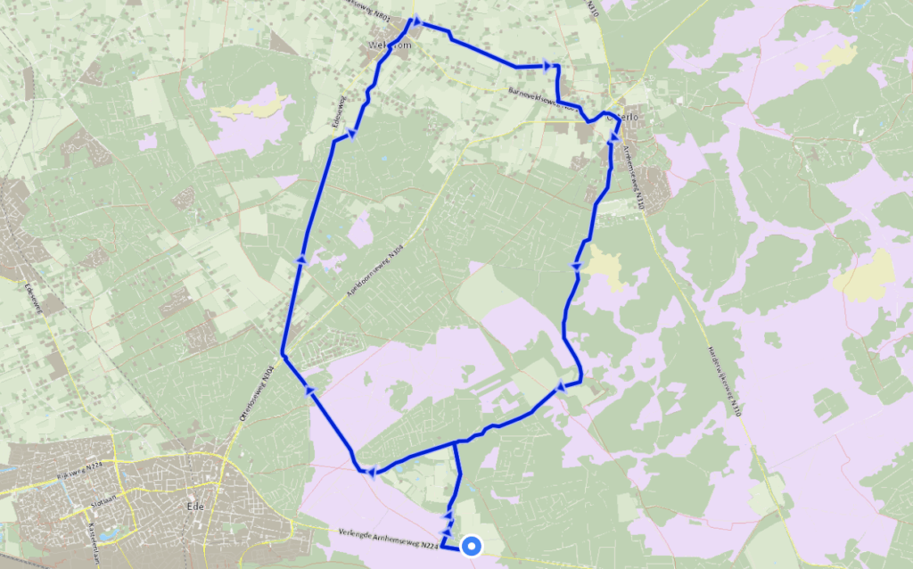 De route gaat door de gemeente Ede. Het gebied waar u doorheen fietst bestaat voornamelijk uit bos en heide. In de omgeving zijn loopgraven uit WO I en II en er zijn meer herinneringen aan WO II.
