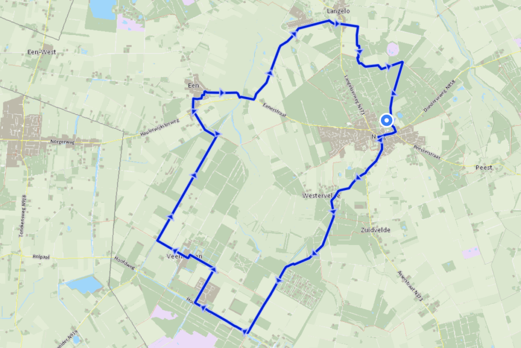 De start is bij de parkeerplaats Schapendrift 7 in Norg.