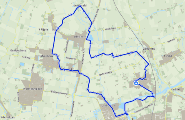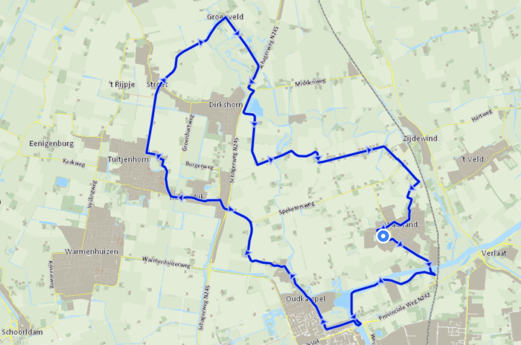Tijdens deze fietstocht doorkruist u verschillende dorpen. De route begint in Waarland en voert u langs Oudkarspel, Tuitjenhorn en Dirkshorn. In al deze dorpen kunt u eenvoudig even pauzeren voor een kopje koffie of thee. In Oudkarspel passeert u het Behouden Huis, een voormalig schoolgebouw dat nu diverse activiteiten huisvest. Aan de achterzijde van het gebouw kunt u heerlijk op het terras zitten en genieten van de omgeving. Bij het meer van Dirkshorn kunt u even uitblazen. Hoewel er geen horeca aanwezig is, verdient de omgeving absoluut een moment van rust.